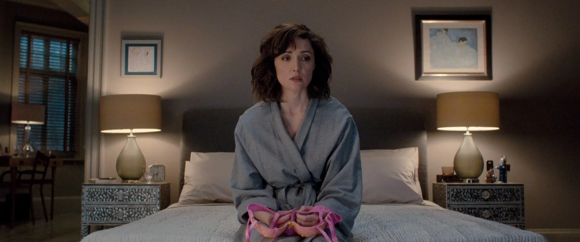 Model exists the bed and goes to look in the mirror to confirm that his hair is still fresh